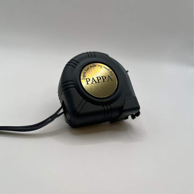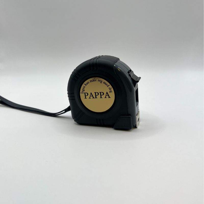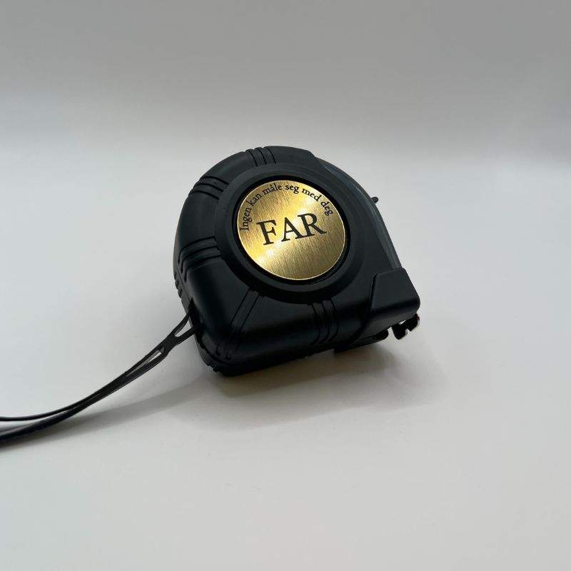 Denne hjertevarmende gaven er mer enn bare et praktisk verktøy – den er en påminnelse om kjærligheten du eller dine har for deres far, bestefar, onkel, bror eller lignende. Hver gang han måler, vil han bli påminnet om hvor spesiell han er. Målebåndet har en nøye utskåret gull akryl runding som inneholder en valgfri rørende melding som for eksempel: «Ingen kan måle seg med deg FAR, Klem fra dine kjære barn». Laget med kjærlighet og presisjon, er dette målebåndet en perfekt og robust julegave som skiller seg ut og potensielt varer livet ut.