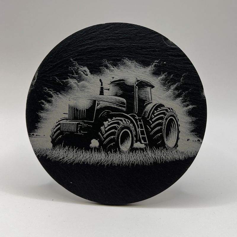 Eksklusive glassbrikker i ekte skifer med detaljert lasergravert traktor motiv. Et unikt og gårdsinspirert innslag til borddekkingen – både praktisk og dekorativ. Perfekt som gave eller til hytta.